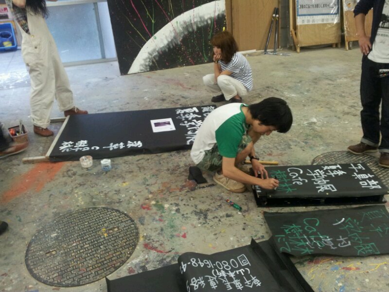 夏季学内展を来週にひかえ立て看の作成を行いました。